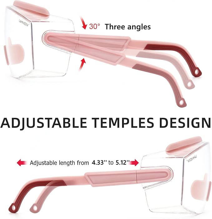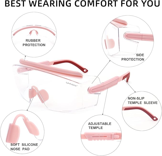 UKNOW Safety Goggles Over Glasses, Anti Fog Safety Glasses with Clear Wraparound Lens, ANSI Z87.1 Protective Eyewear