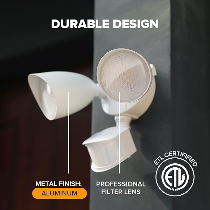 - METAL AND ROTATABLE DESIGN: Adjustable heads provide a customizable coverage area. Aluminum material, IP65 waterproof and 50,000hrs lifespan, make this security light pecfect for the porch, back yard, front door, garage, driveway, walkway, step, etc
