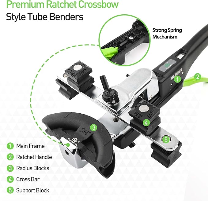 - The racheting mechanism and innovative release lever allow for bending with one hand. With an ergonomic handle, is effortless to operate