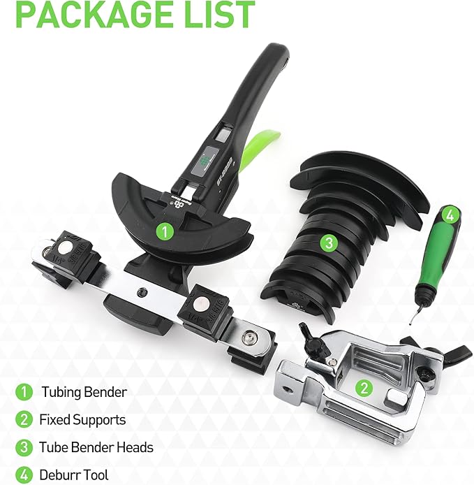 - Provide 7 interchangeable tube bender heads meet different usage needs, making your work more convenient. SIZE: 1/4", 5/16", 3/8", 1/2", 5/8", 3/4", 7"8