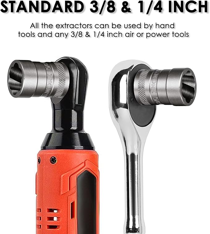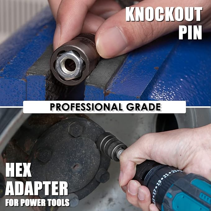 - The standard 1/4 & 3/8 inch square drive and hex adapter make the stripped lug nut remover compatible with hand, air, or power tools—the knockout pin for easier removal