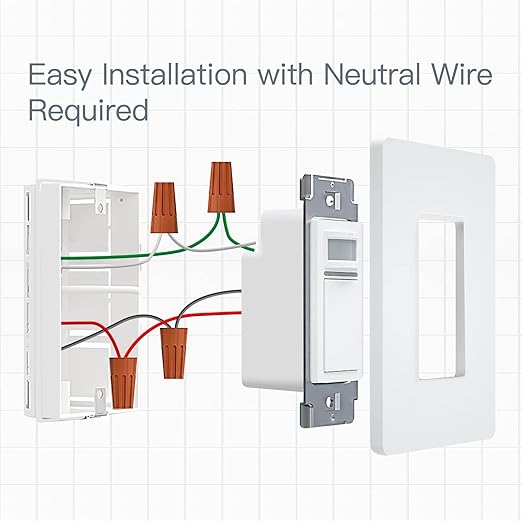 - 【Easy Install with Energy-saving】 Neutral wire is required with extremely simple wiring by its standard wall plate size;the built-in passive infrared sensor saves money on your energy bill by making sure unused lights is always turned off;2.4G WiFi only for APP configuration;includes full 2-year warranty and 60-day refund guarantee for complete.