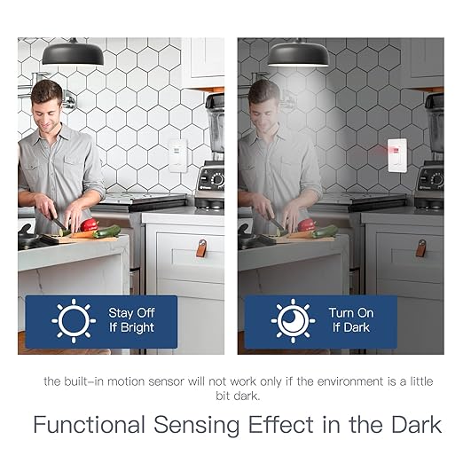- 【Motion Sensor Switch】Completely hands-free and smart operation of your connected lights. Automatically turn on/off lights based on room PIR occupancy when detect infrared motion. Adjustable time delay, together with adjustable sensitivity. Detection motion speed is 0.6~1.5m/s. Ideal for areas such as bedrooms, hallways and restrooms where hands-free operation is ideal.