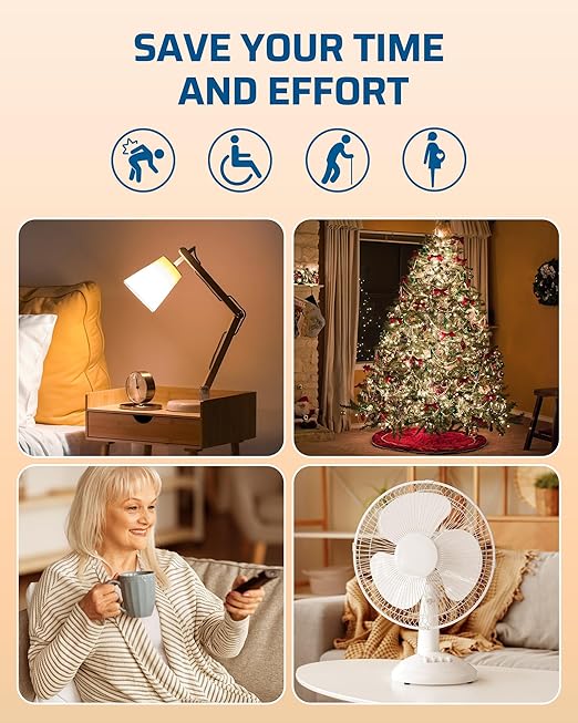 - 【Simply Plug in & Play】Simply plug in and play out of the box; No programming or tools required, just remotely control hard-to-reach home appliances at the push of a button on the transmitter; this wireless light switch is ideal for the elderly, pregnant women and those with limited mobility or back pain, no more bending down; make your life easier, safer and more energy-efficient