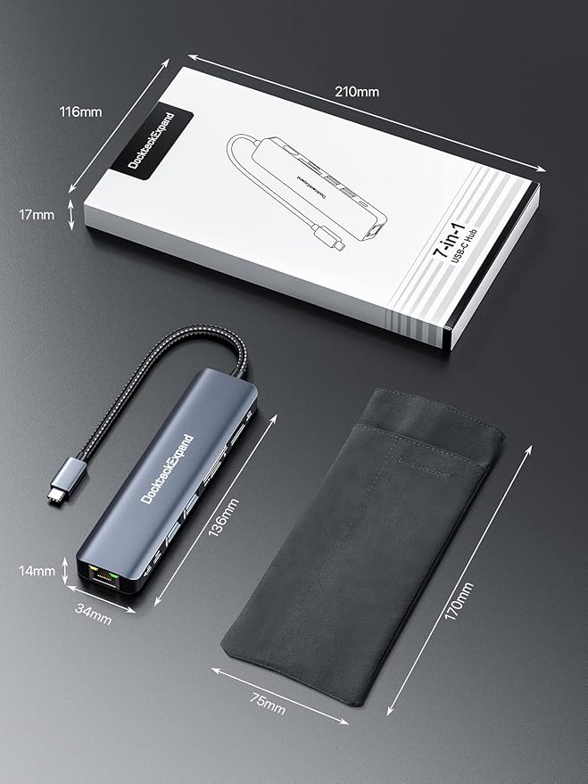 - 【What You Will Get】DockteckExpand USB C Hub Multiport Adapter (Aluminum Casing), user guide, travel pouch, lifetime technical customer service and friendly email support, slim and compact.