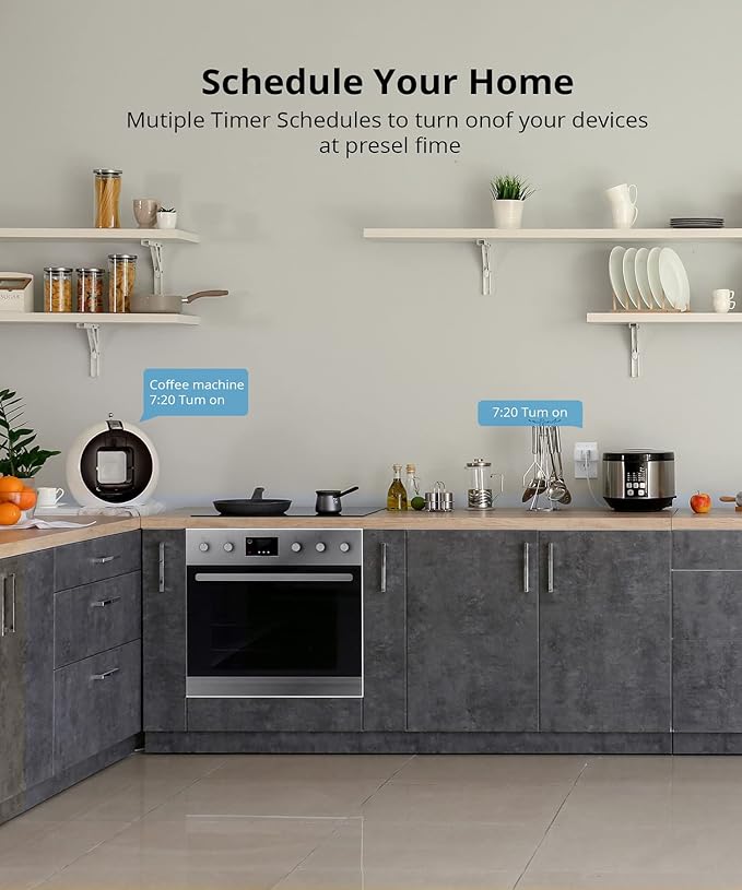 - Set time schedules for the lights and home appliances: You can set countdown/single/repeat timers to auto-turn on/off the WiFi controlled outlet on App. One tap ON/OFF Energy Saving