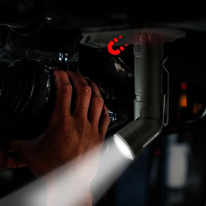 - 90°ROTARY HEAD & CLIP: This compact flashlight features 0-90°adjustable head, with 360 degree clip, you can clip the flashlight on your pocket or belt, the small tactical flashlight lightweight design not only feels comfortable in your hand, but can also fit in your pocket, backpack, or purse, to make hands free.