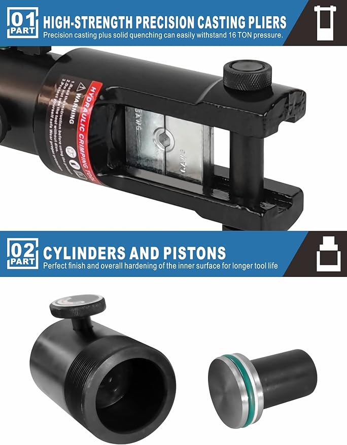 - Hydraulic crimping tool 10 pairs of dies: 10 AWG,8 AWG,6 AWG,4 AWG,2 AWG,1/0 AWG, 2/0 AWG,4/0 AWG, 250MCM and 1/8 "for stainless steel wire rope