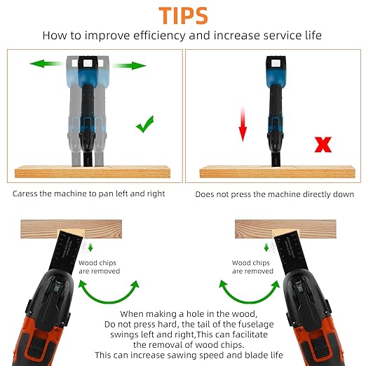 - ★【Special Design & Precision Cutting】Equipped with built-in length markings in both inches and centimeters, our saw blades ensure accurate cuts with ease and efficiency. 2 types of specially designed precision saw blades have a longer wavy tooth, specially designed for faster, cleaner cuts in wood and plastic.