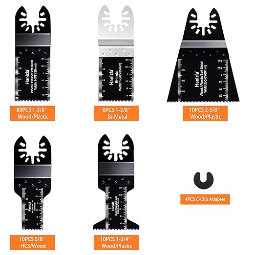 - ★【High Quality Oscillating Saw Blades kit】120 pcs Multitool Quick Release Saw Blades include 8 different types of saw blades, for cutting wood, metal, plastic and other materials, each type of saw blade is specific for a particular purpose. Our oscillating saw blades can meet a variety of needs, which could be used for workshop, household or other place.