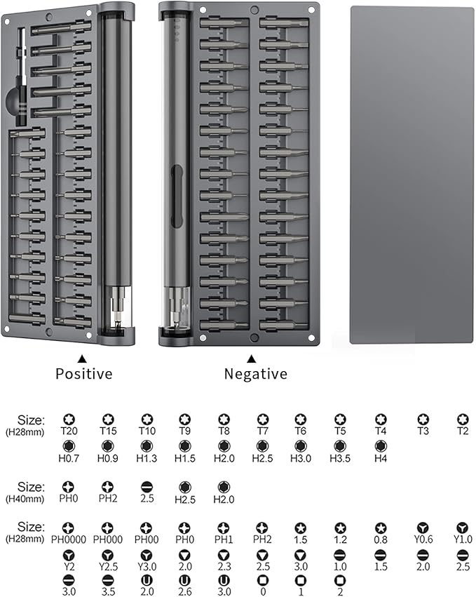 - 【Multi-Purpose Uses】Comes with 55 precision bits and 1 extended bar, various screwdriver bits of different specifications can meet different needs easily. Suitable for the quartz watch, regular household appliances such as cameras digitals, radios, tablet PC, smartphones, drones, joystick, some eletronic products etc.