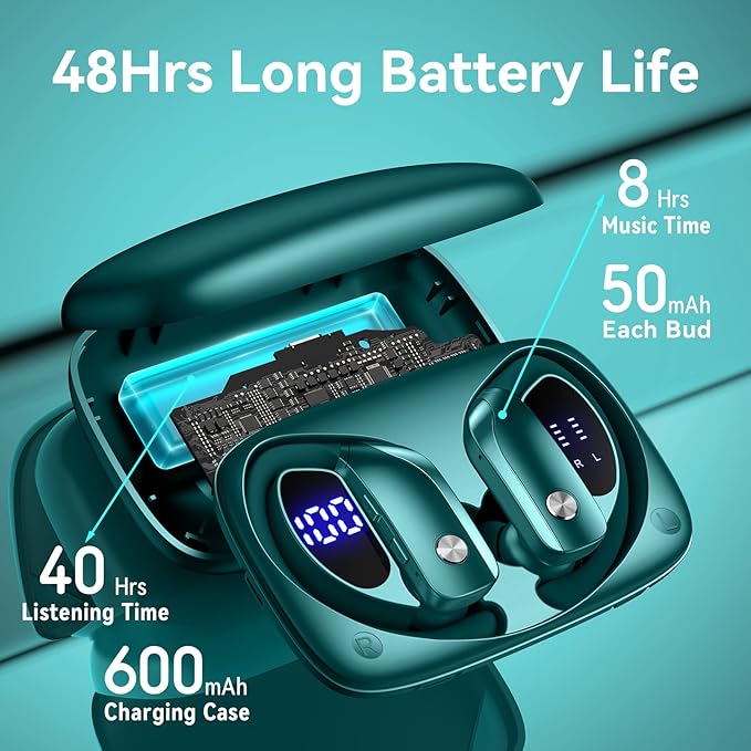 bmani Wireless Earbuds Bluetooth Headphones 48hrs Play Back Sport Earphones with LED Display Over-Ear Buds with Earhooks Built-in Mic Headset for Workout Green