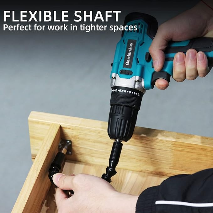 - 【What Will You Get?】 You will get: 1 x GardenJoy Cordless Power Drill, 1 x 1.5 AH Battery, 1 x Fast Charger, 3 x HSS Twist Drill Bits, 2 x Wood Drill Bits, 9 x Screwdriver Bits, 1 x Socket Adapter, 1 x Extension Rod, 9 x Sockets, 37 x Screw Kits, 1 x Flexible Shaft, 1 x Goggles, 1 x User Manual, 24-Hour Customer Service. If you have any question, please feel free to contact us.