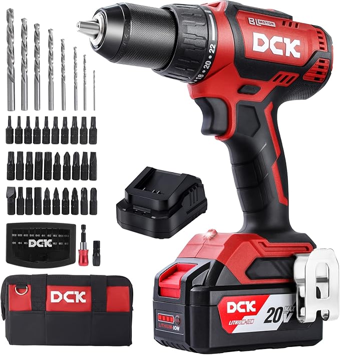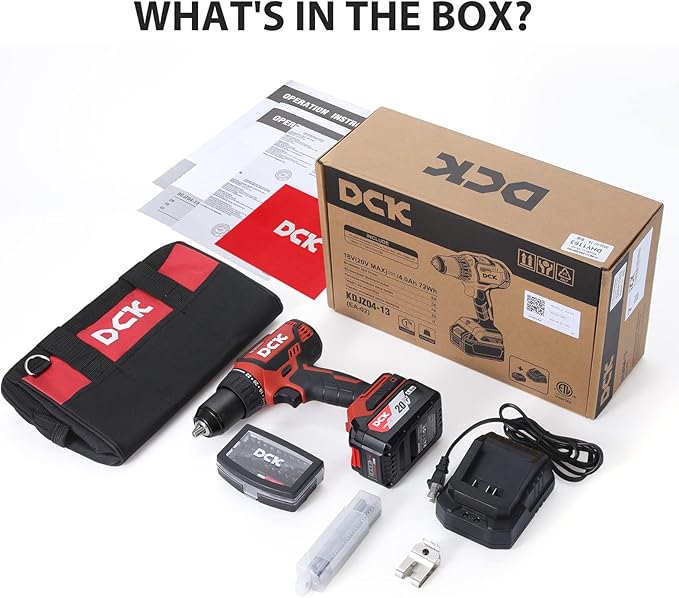 - [4.0Ah Durable Battery and Charger] Its 20V 4.0Ah battery is durable, so you don’t have to worry about running out of power in the middle of a project. The power drill kit is equipped with a large-capacity charger that greatly extends your usage time. This electric drill also has a battery indicator to remind you of the battery status, making your work more efficient and convenient. The battery and charger are compatible with DCK 20V tools.