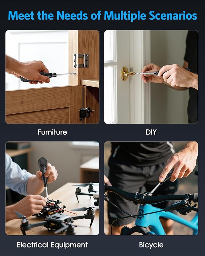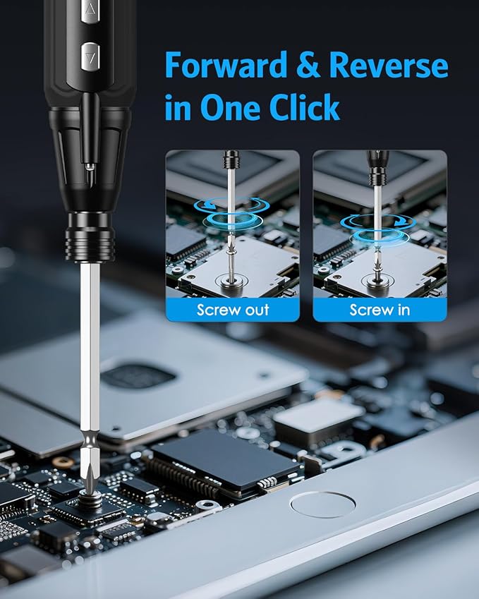 - 160 g Portable and Lightweight: Each cordless screwdriver is cordless, lightweight, portable, compact, even pocket-sized, more lightweight and portable than traditional gun-type screwdrivers, and more convenient than corded ones with wires; Wherever you go, whether you are working on your computer or electronic device, working in your home garage, working at home, etc