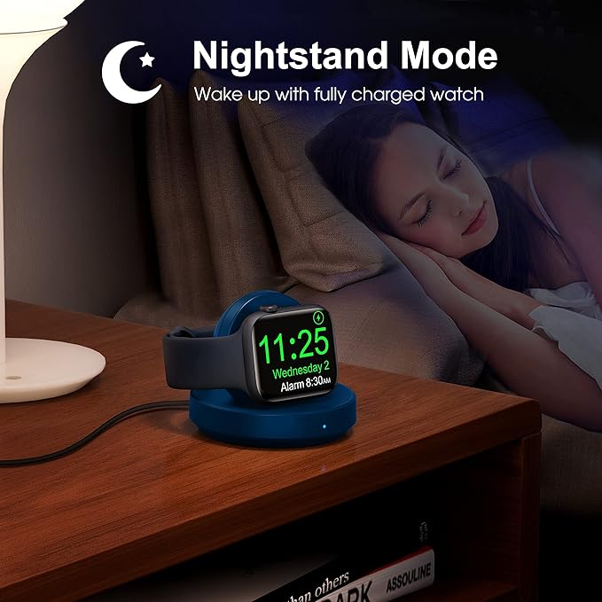 - Charging with Nightstand Modes: The watch charging stand supports Apple Watch in nightstand mode, bedside time-telling piece, also could be an alarm clock. (Tips: before using the nightstand mode function, please turn on the nightstand mode in your watch settings in advance)