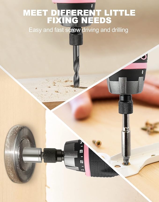 AVID POWER Electric Cordless Screwdriver Set Rechargeable 4V Power Screwdriver Kit with 44pcs Accessories, 5.65Nm Screw Gun, 5+1 Torque Setting, 2 Position Handle with LED Light - Pink Tools for Women