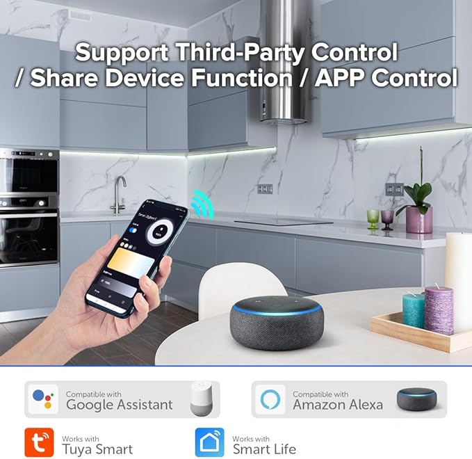 - 【Support Echo Plus,Echo(4th Gen),Home-Kit Gateway】Support Echo Plus,Echo(4th Gen),Home-Kit.Compatible with general Zigbee bridge.More stable and convenient connection with Zigbee Gateway.Work with Tuya Bluetooth/WiFi Dual-Mode Gateway,it can Support Third Part Voice Control like Alexa,Google Home.Package content: 1X LED controller,1X User manual.Can't support Smart-Things.