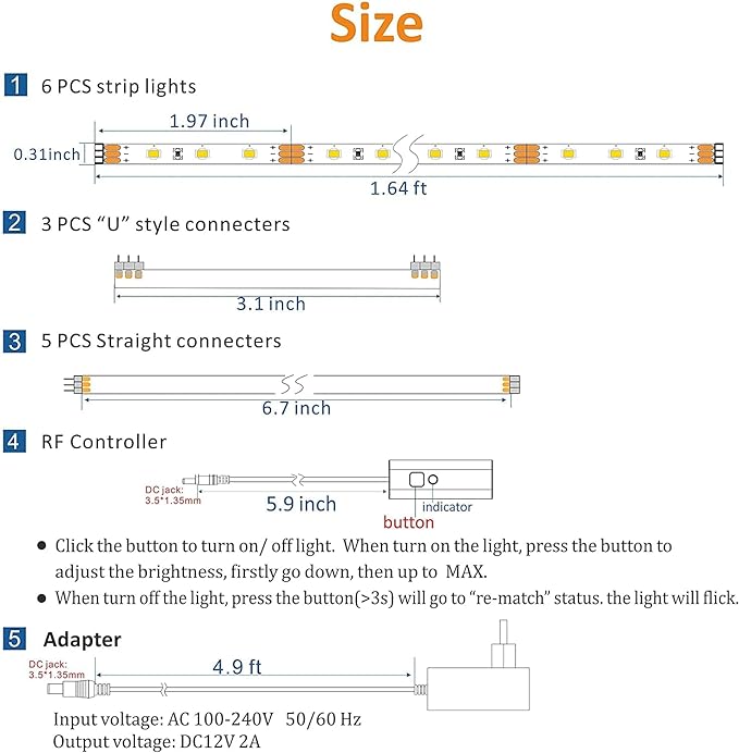 - DIY LED light strip: 6 PCS pre-cut strips, total 9.8 ft,many kinds of connection option,Great way to upgrade your cabinets,closet,desk,tv back,bookshelf,bed,wardrobe,display case,bedroom,workbench etc