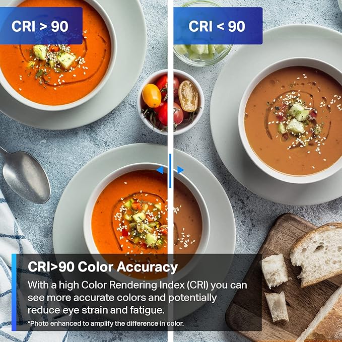 - 【Superior Lighting Performance】Enjoy a truly superior lighting performance with these a 220° beam angle for wider coverage, a color rendering index (CRI) > 90 for truly vibrant colors, and a luminous 800LM brightness level. Fully dim the lights from 1%-100% to match the mood anytime of day.
