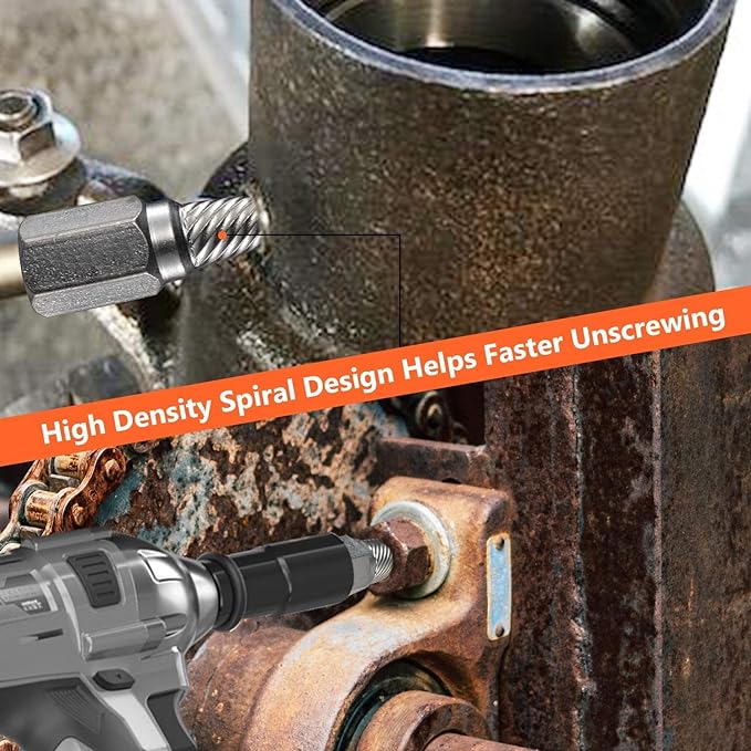 - ๐งEasy to use:Suitable for both power tools and hand tools,high density spiral design helps faster removing broken screws, bolts, nuts, studs, fittings, threaded pipes and pins.