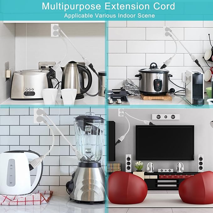- COMPACT DESIGN: 1-foot extension cord with low-profile right angle flat plug, perfect for tight spaces behind furniture or appliances
