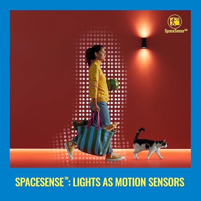 - ACTIVATE WITH MOTION – With a minimum of two WiZ lights in the same room at least 2m/6.56ft apart, you can activate SpaceSense feature in the WiZ Connected app and lights will turn on and off automatically when they detect motion - no sensors needed!
