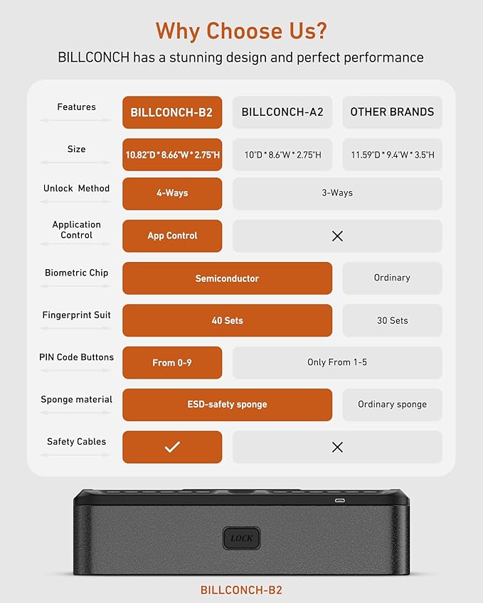 - 5-Star After-Sales Service: We are committed to providing top-notch intelligent gun safes to Protect your home! If you are not satisfied with the quality of the pistol safe product, or the results do not meet your expectations, please contact us through Amazon within the 365-day warranty period and we will provide you with exceptional service and support, including refunds or replacements and more. Rest assured that BILLCONCH's team of handgun safe professionals is always willing to help