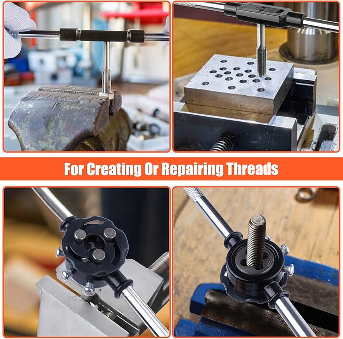 - 【PERFORMANCE】: With the essential tap wrench and die holder, coarse and fine threads can be made, and these threading tools are machined with close tolerance to meet your high standard application requirements.