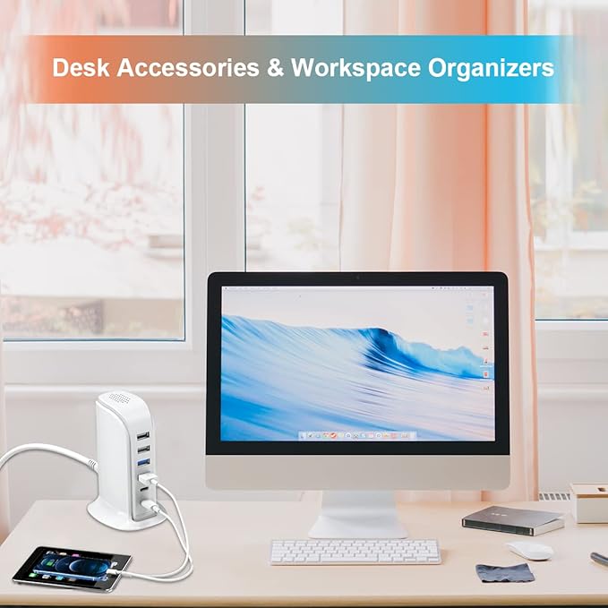 - Desktop cable management: Charging station 6 ports with 5 ft power cord; Compact, Lightweight, Space saving, Portable, Versatile, USB charging hub for 6 devices simultaneously.