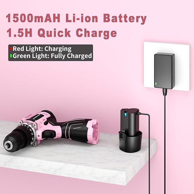 - 【 Durable Batteries & Fast Charger】 12V 1.5AH lithium-ion battery, it's durable that you have no worries about running out of power in the middle of a project. Power drill set is equipped with a fast charger, so it takes only about 1-2 hour to make the battery fully charged, greatly saving your precious time.