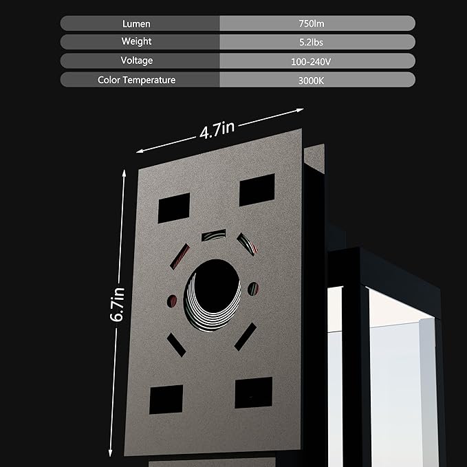 - Easy to install: Our LED outdoor exterior light fixture measures 4.7"(L) x6.7"(W) x 14.7"(H); Back Plate: 4.7"(W) x 6.7"(H).Quick installation outdoor wall light with mount using the included mounting accessories.