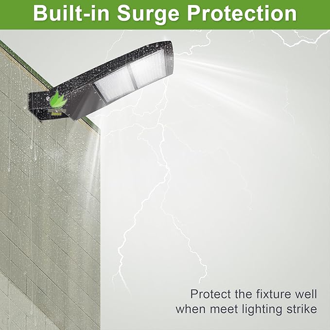- Better Design: Our 300W LED Shoebox Parking Lot Light features a built-in 20KV surge protector for enhanced protection against lightning strikes. Includes an adjustable slip fitter mount compatible with round poles (OD ≤ 2.4"). Ideal for outdoor commercial lighting applications