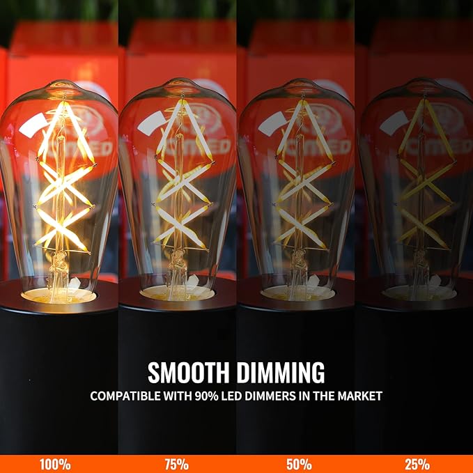 - SMOOTHLY DIMMABLE 10%-100%: OMED warm light Edison Bulbs are powerful dimmable, allow you to adjust the level of light to enjoy the smooth dimming and feel the light grow from 10-100% through the most LED dimmers, creating a vibrant atmosphere anytime.