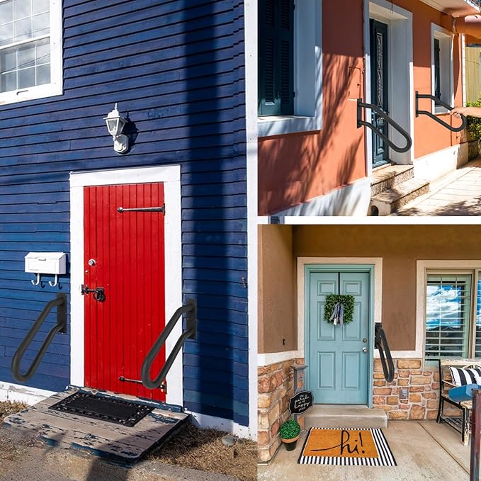 - 【WIDE RANBGE IF APPLICATIONS】U-shaped metal stair handrails can be easily installed anywhere around the house, indoors or out, on entry doors, porches, patios, garages or other stairs that require extra support, especially when there is a risk of falls.
