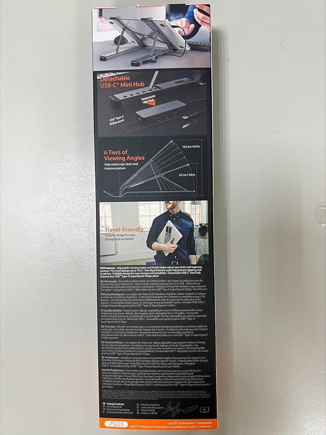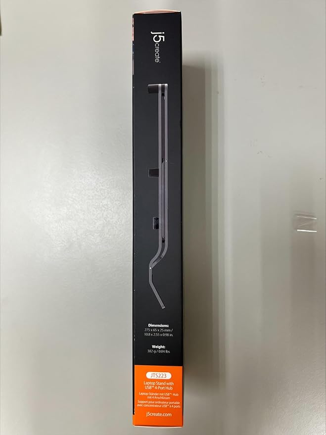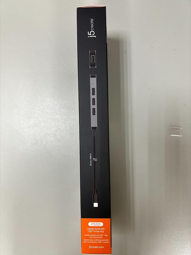 j5create Portable Aluminum Laptop Stand with USB 4-Port Hub, Foldable and Adjustable Notebook Riser with 4 USB-A Ports for MacBook, Laptop, and Tablet up to 16" (JTS223)