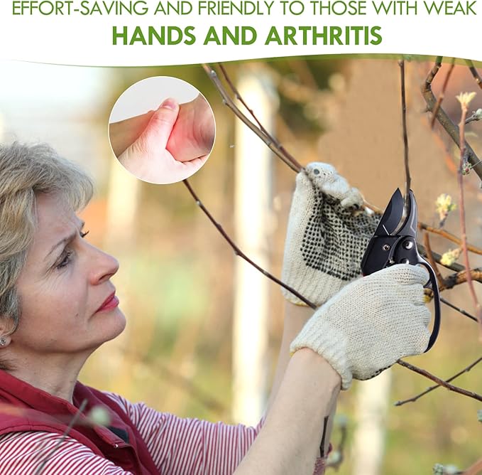 - ๐GARDENING GIFTS AND BRAND GUARANTEE: This pair of scissors is a gift for gardening enthusiasts because of its easy-to-lock feature and comfortable handle design. Among horticulturists, it's a popular choice for Christmas gifts. we do not have to worry about the quality and after-sales problems of this brand protection pruning scissors.