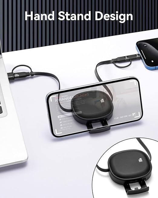 - ⚡【Retractable & Phone Stand Design】:The Retractable multiple charger cord has a built-in phone stand design, a retractable stand was set up in the back of the charger box,which could be used as phone stand to let you free hands and enjoy watching while you are charging.