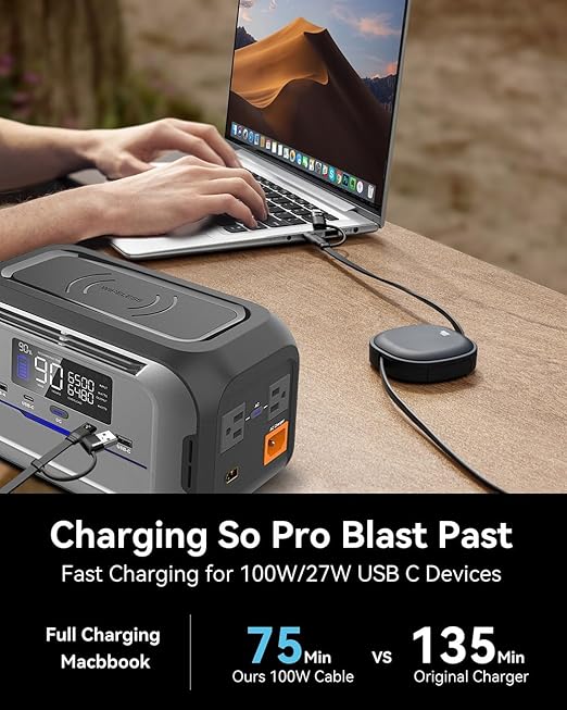 - ⚡【PD 100W USB-C Fastest Charging & Data Sync 】: Enjoy lightning-fast charging speed of up to 100W when used with a USB C fastest charger.Power up your MacBook Pro/Air 13" from 0% to 60% and iPhone 17/16/15 up to 80% and the Samsung Galaxy S24+ up to 88% in just 30 minutes using a USB-C to Type-C cable, and an iPhone 14 Pro Max from 0% to 70% with using usbc to lightning cable, just 30 minutes/transfer 1G large files in 25 seconds. (Charger not included!).