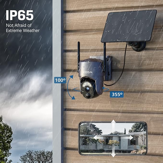 - 【Completely Wireless & Solar Powered】The Xega Security Camera works on 2.4G WiFi, is equpiped with Solar Panel and builted-in high-capacity battery, which realize non-stop power and completely wireless security. Install the solar security camera outdoor anywhere like Apartment, Garden, Yard, Garage, keep an eye on your home security.