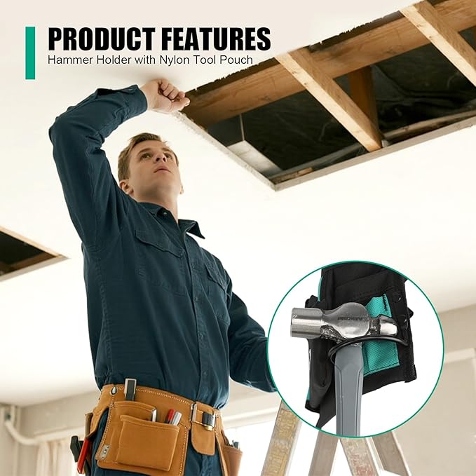 - Hammer Holder & Large Capacity – Includes a dedicated hammer holder and enough space for tools of all sizes, ideal for a variety of trades and DIY projects.