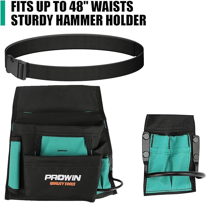 PROWIN Heavy Duty Waterproof Tool Bag with Adjustable Belt, Multi-Size Carpenter, Plumber, Electrical Garden Tool Pouch with Hammer Holder, Abrasion-Resistant Large Capacity FITS UP T0 48" WAISTS