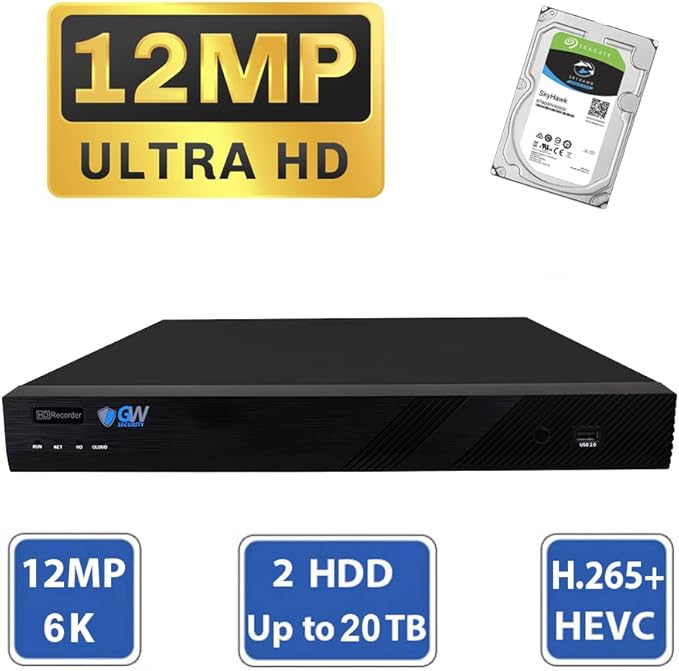 GW Security 16 Channel NVR UltraHD 12MP 6K @30FPS Face/Human/Vehicle Detection Security Camera System with 8 x 12MP IP Two-Way Audio Smart AI Dome Cameras, Color Night Vision, Outdoor/Indoor Camera