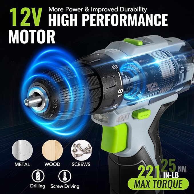 - FUNCTIONAL DRILL SETS COMBO KIT, 3/8" keyless chuck provides high compatibility, with commonly used drill and screwdriver bits, helps you hang pictures, assemble furnitures with ease