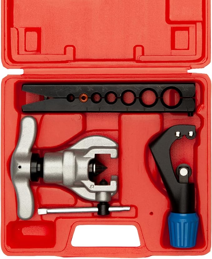 - Practical Tool Kit: Create 45 degree precise flares in soft copper, brass, aluminum and mild steel tubing...Including a tube cutter can also cut PVC pipes. Made of 45# steel, which are durable. widely used in gas, water, refrigeration, HVAC and brake line application