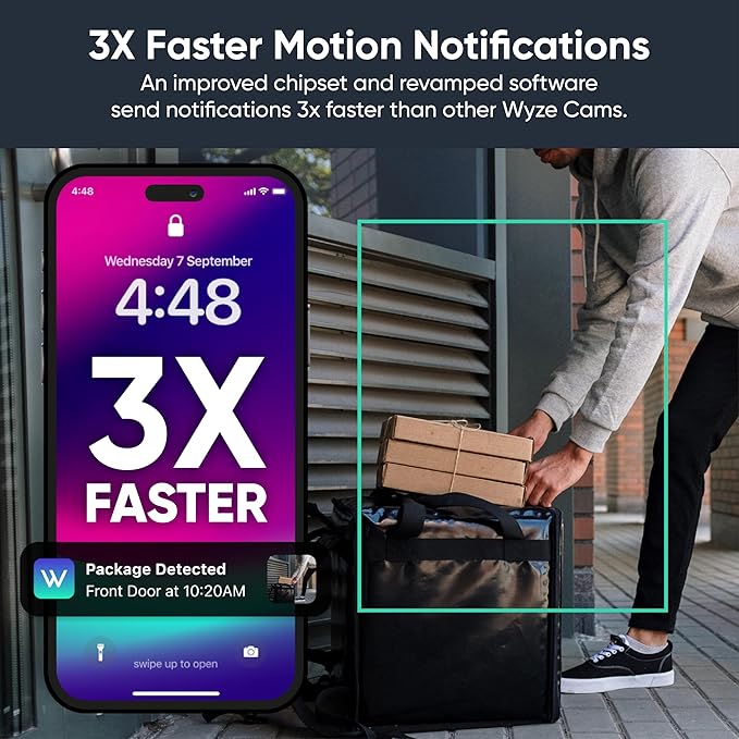 - Instant Motion and Sound Alerts - Stay informed with instant notifications sent to the Wyze app whenever it detects motion or sound. You can adjust sensitivity with Motion Detection Zones or easily turn off notifications whenever needed.