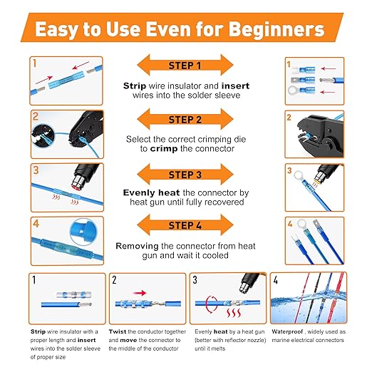 - 【Portable and Organized】These heat shrink wire connectors are packaged in an advanced box with a handle and removable organizer, which can provide a convenient move and organized electrical wire connectors as weill as butt splice connectors for you.