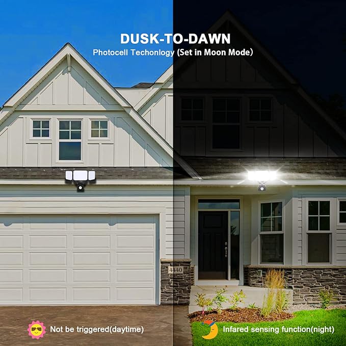 - << Rotatable Design and Easy Installation >> - The triple heads of this security light and the motion sensor can be adjusted to cast light in a 270-degree detection zone, so you can see everything that’s happening in your home, yard, garage, garden, driveway... And just within 3 steps installation (refer to our User manual or installation video).