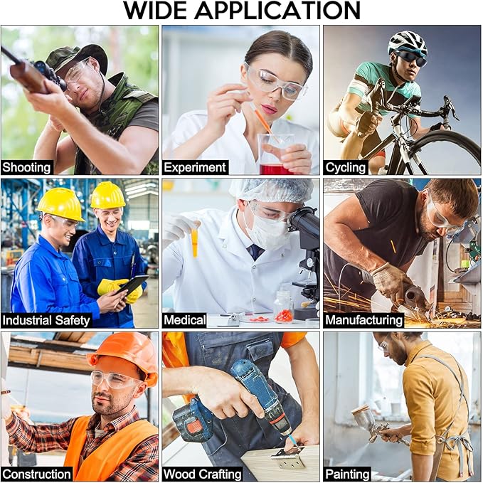 - Wide Application: this impact resistant lens eyewear is simple, stylish and protective, and has a wide range of applications, suitable for men or women in laboratories, sports, cycling, shooting, industrial safety, medical, painting, manufacturing, construction, fishing, welding and other indoor and outdoor activities