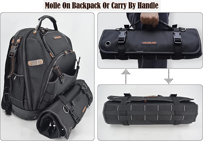 - Save-Space: This roll up tool pouch takes up way less space than your old toolbox and the tools don't rattle around when wrapped.- Gear roll up pack neatly and quietly.